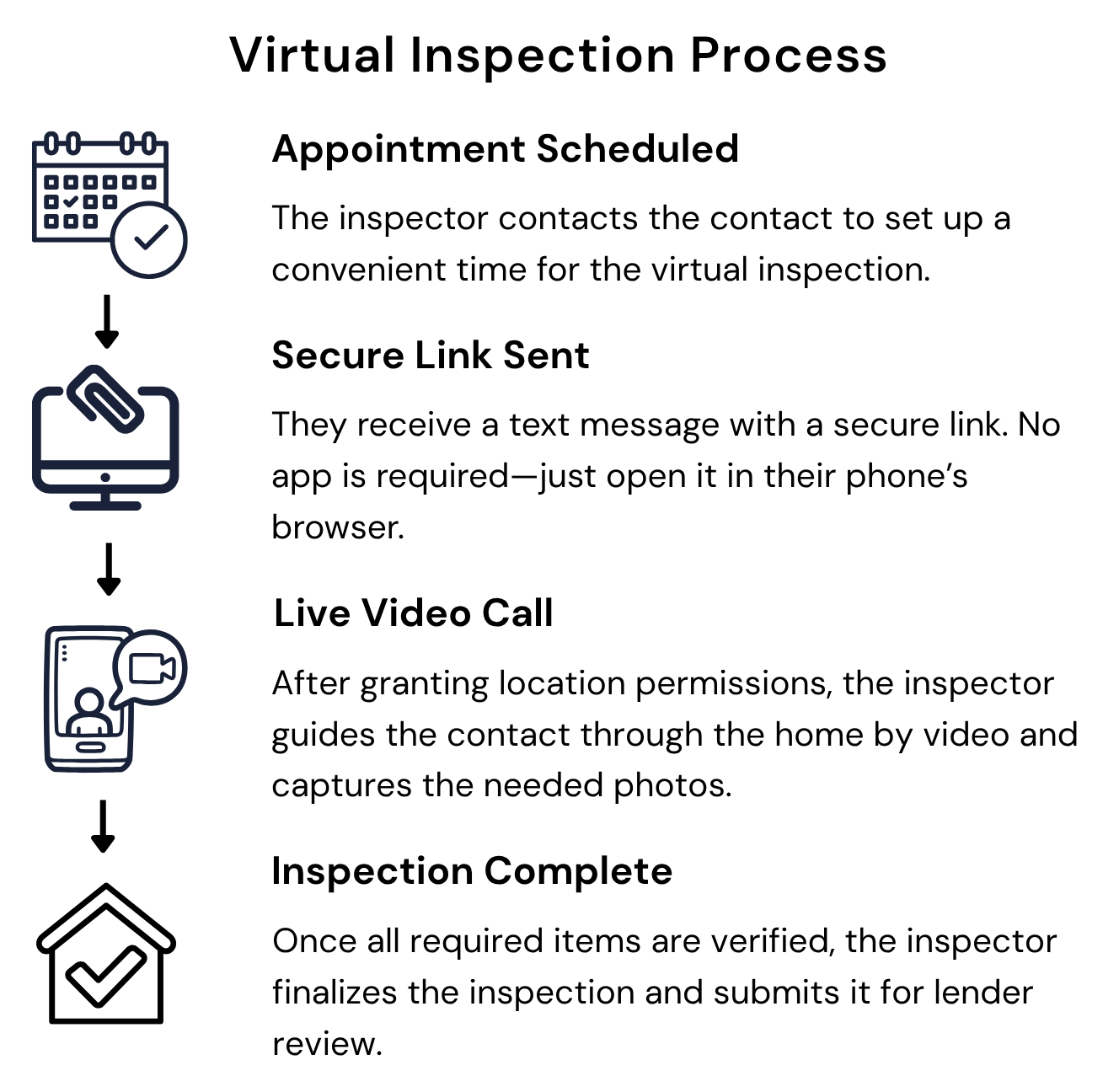 Virtual inspections can also be used for basic property inspections for home equity lines of credit or other types of low-risk loans.